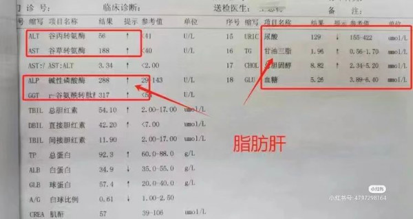 ◎ 化驗單出現了這幾個指標異常要警惕脂肪肝。/ 圖:小紅書