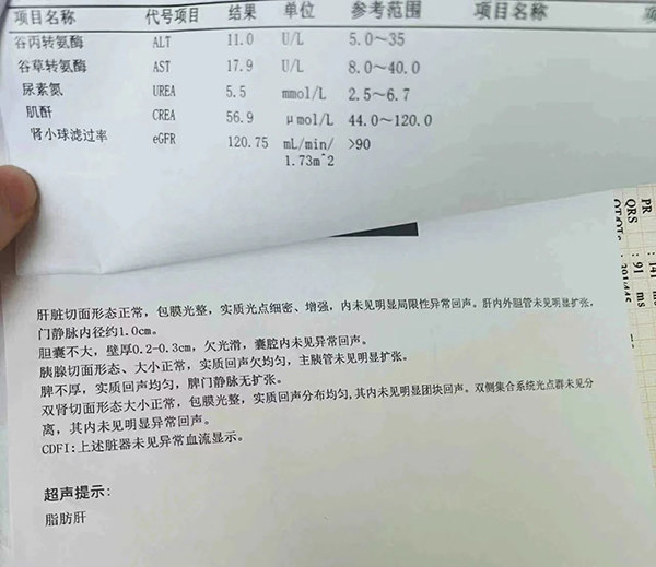 “就是因為我一直不怎么胖,所以查出脂肪肝那會兒沒太當回事兒。”歐豪表示,當時拿到體檢報告的時候注意到了“脂肪肝”三個字,也問過體檢醫生,說是輕度脂肪肝,可逆的,注意飲食就好。